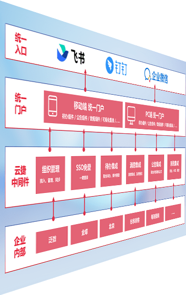 对协作平台提供支持服务,,支持企业应用与协作平台对接,,,,包含组织同步、、、、消息集成、、待办集成等。。。支持目前主流的协作平台:钉钉、、、企微和飞书。。