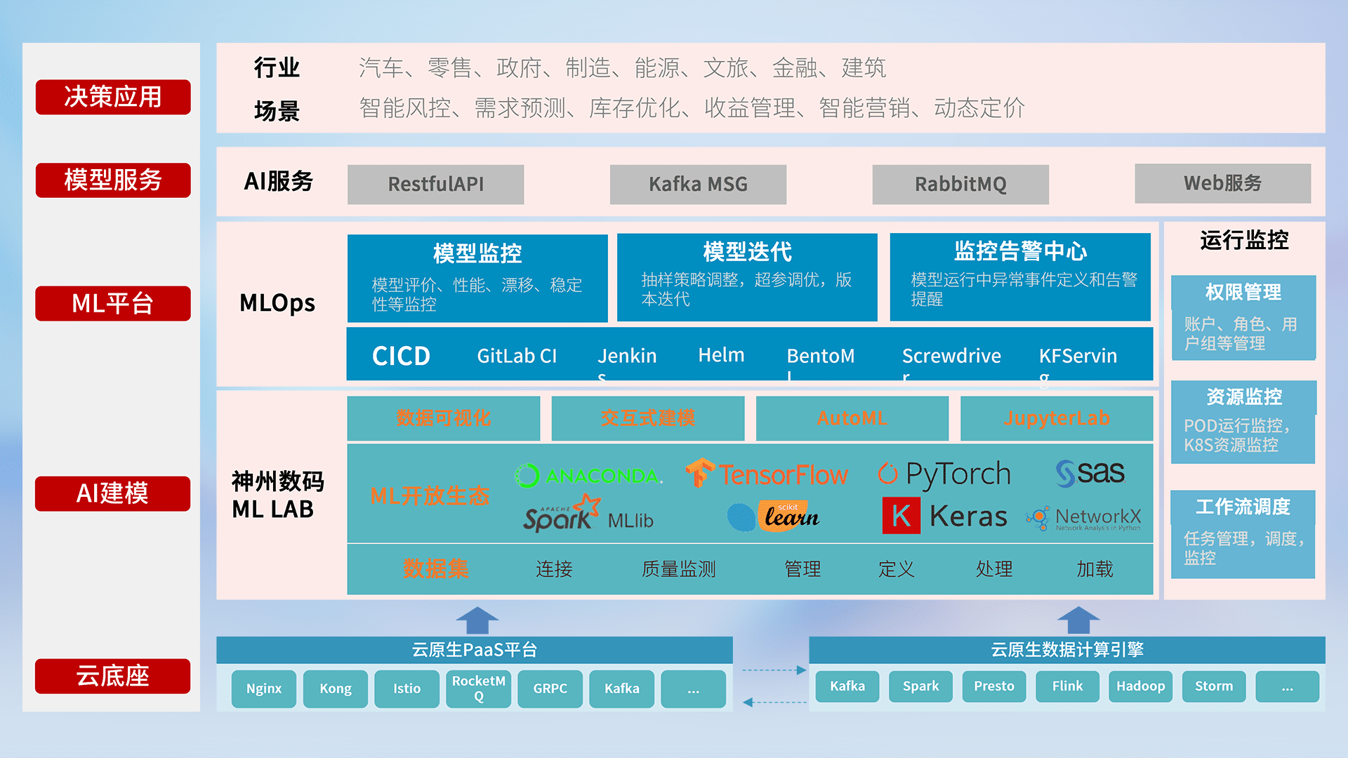 数据+模型双引擎驱动,,,,面向智能服务场景,,快速灵活利用AI技术,,,支持业务决策,,,,助力企业智能化转型破局。。。